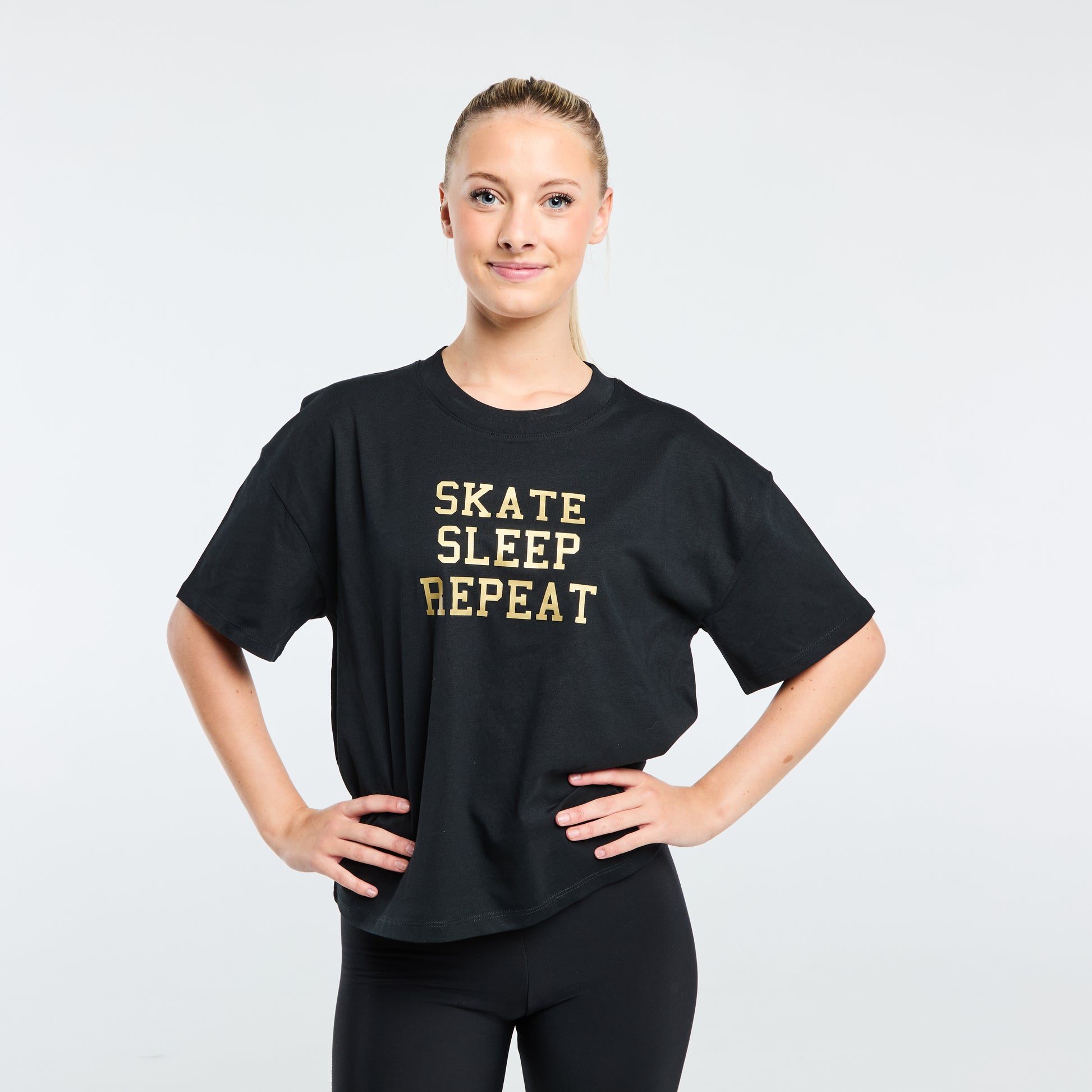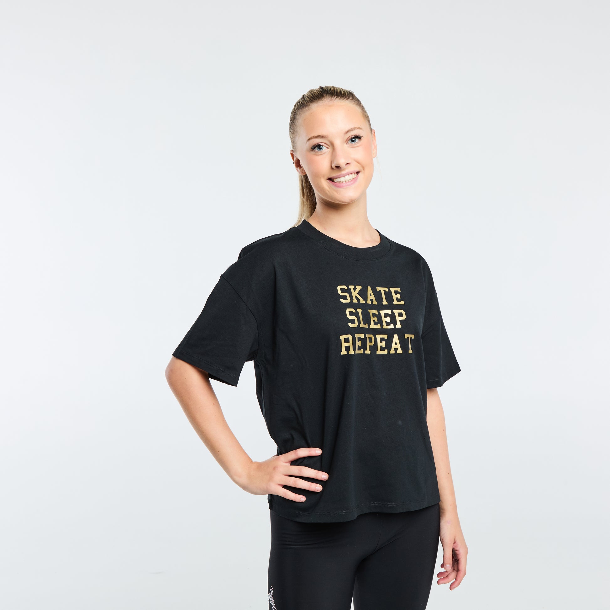 Tee-shirt à message "Skate Sleep Repeat" destiné aux passionnés de glisse, offrant un style affirmé même en pleine pratique.